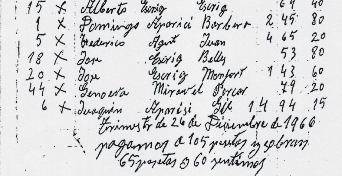 (imatge pròpia: part d’una comptada de la Societat del mas de Vidal, 1966)