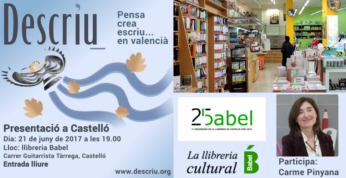 El proper dimecres 21 de juny a les 19.00h, Descriu fa una visita a Castelló de la Plana, a la llibreria Babel, un lloc ple de màgia, històries i cultures d’aquestes que agraden tant a la puput de Descriu.