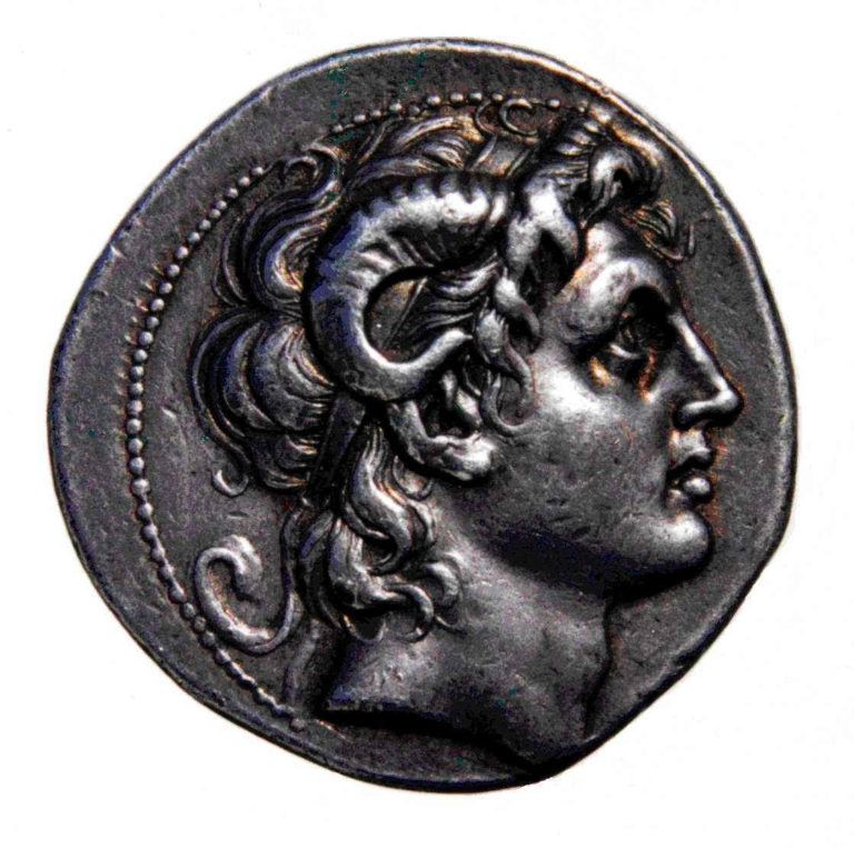 Moneda representant Alexandre el Gran amb banyes