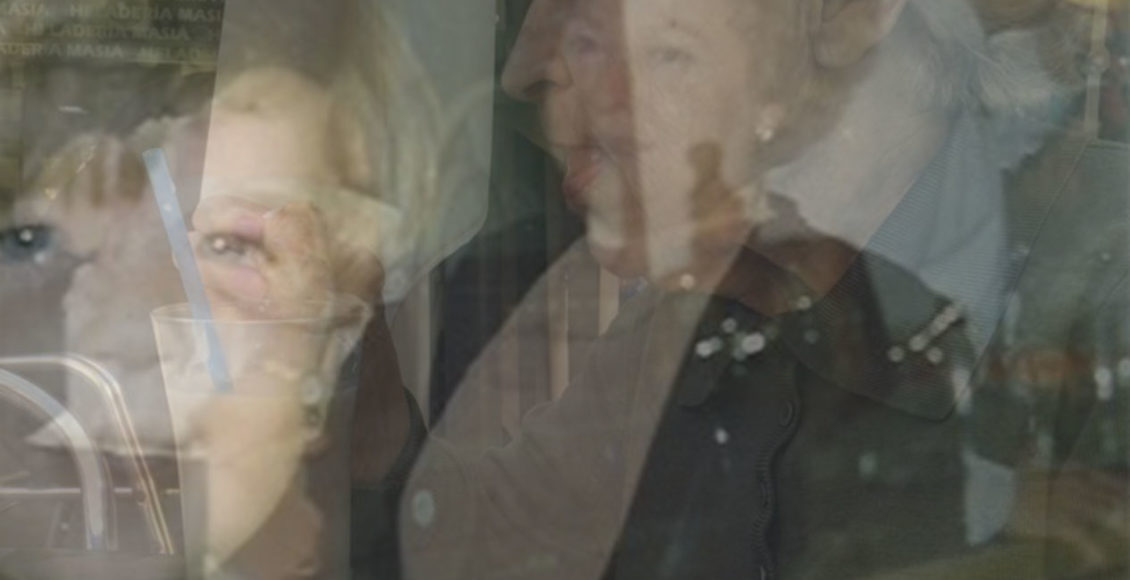 La neta s’acaba el gelat i demana un got d’aigua. L’àvia té els ulls entelats. El seu gelat està tot fos i sencer.