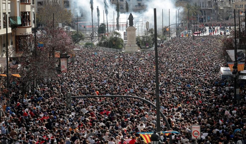 Imatge: última mascleta 2020. https://www.heraldo.es/noticias/nacional/2020/03/01/fallas-valencia-las-fallas-arrancan-con-una-mascleta-de-aniversario-tradicional-y-apoteosica-1361680.html
