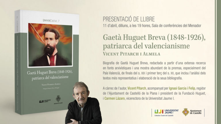Cartell de la presentació del llibre ‘Gaetà Huguet Breva (1848-1926), patriarca del valencianisme’.