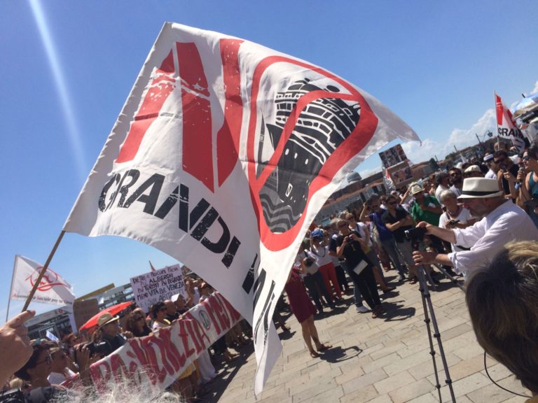 Més enllà de l’impacte ambiental que suposa multiplicar la població d’una localitat de forma puntual i estacionària, el turisme de masses porta aparellat un impacte social que, a mesura que avança el temps, s’està veient té més aspectes negatius que no pas positius: l’increment del preu de l’habitatge (tant per a la venda com per al lloguer), la precarització del treball en un sector turístic gairebé desregulat (que es veié incrementada amb la darrera reforma laboral) o la massificació de ciutats que es converteixen en llocs hostils per als seus habitants habituals, estan fent que cada cop hi haja més gent que diga prou. En ciutats com Barcelona o Palma, els veïns i veïnes estan començant a organitzar-se en plataformes que denuncien la situació insostenible que estan vivint. Altres ciutats, com ara Venècia l’augment del preu de l’habitatge i la impossibilitat de conviure amb milers de turistes cada dia, va donar nom ja fa temps al conegut síndrome de Venècia en referència a l’expulsió de la ciutat de la població local, que no podia afrontar el preu de la vivenda ni suportar la pressió humana (a la imatge es pot vore una manifestació de venecians i venecianes el passat 2 de juliol, a l’arribada d’un creuer al port de la ciutat) i que busquen desesperadament una solució que sembla no estar prop.