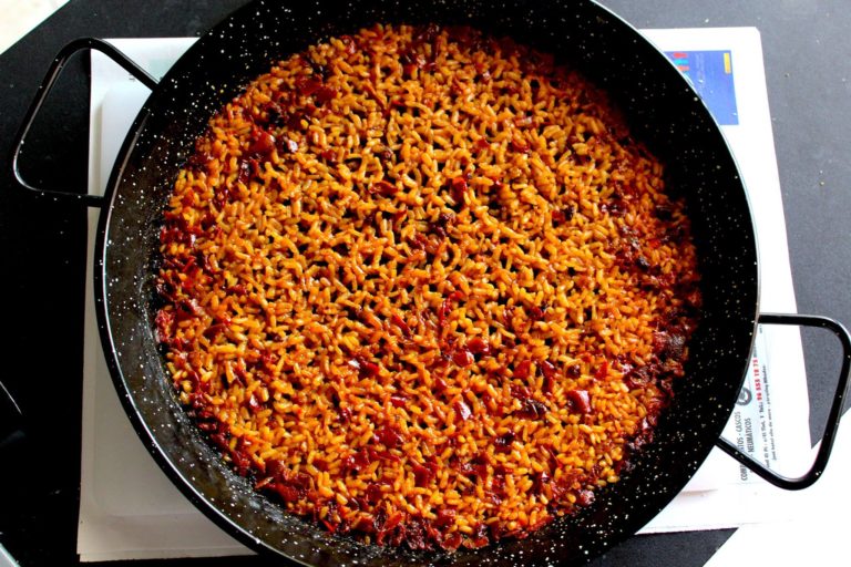 Açò no és cap al·legat en defensa de la paella de xoriç, fesols, ous bullits i pèsols, en absolut, però jo que sóc d’Alcoi, on normalment decorem la paella amb pimentó roig torrat* (més conegut com a les gambes dels pobres), el trauma de “la paella no és arròs amb coses”, tot i estar actualment conscienciat, originàriament em pilla un poc lluny.