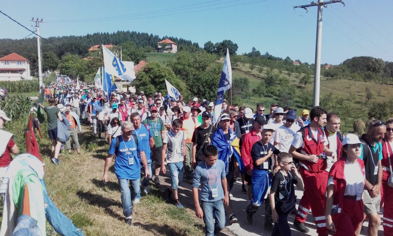 La marxa comença a formar-se, gent de tot arreu carregats de motxilles, somuns* i líquids. Tot i ser un esdeveniment per commemorar les víctimes, hi ha una esfera de germanor molt positiva. Les gents dels pobles deixen els seus terrenys als marxants per tal de muntar les seues tendes. Banderoles i el fum de les rostides balcàniques segellen una amistat forjada per la consciència.